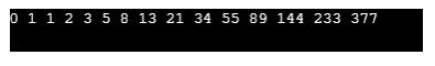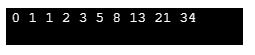 - Output: 0 1 1 2 3 5 8 13 21 34 55 89 144