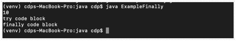 - Finally, the block will execute even if there is a break, return or continue statement in the try block.