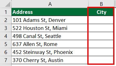 1. Add a new column where you want to extract the city names.