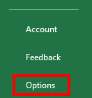 3. In the menu that appears, click on “Options.” It will open the Excel Options dialog box.