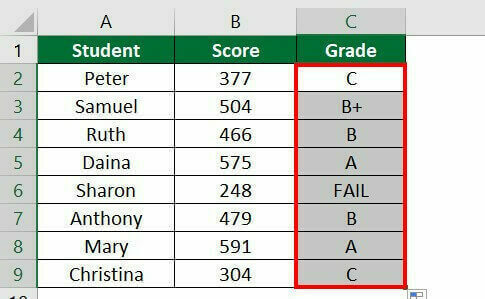IF(B2>300, “C” ): If the score is more than 300, then the student will get a C grade.