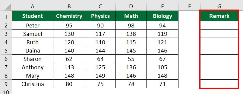 Follow the steps below to calculate students’ grades using the “Nested IF” function.