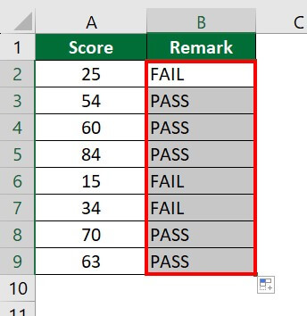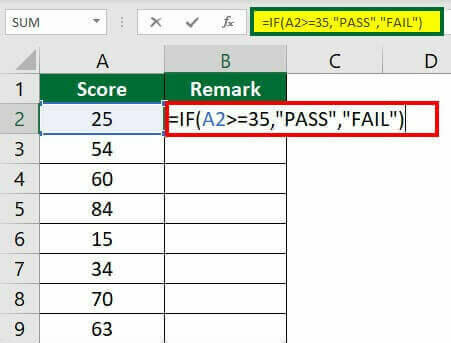 This formula will return “PASS” if the value of Cell A2 is greater than 35 and “FAIL” if the value is less than 35.