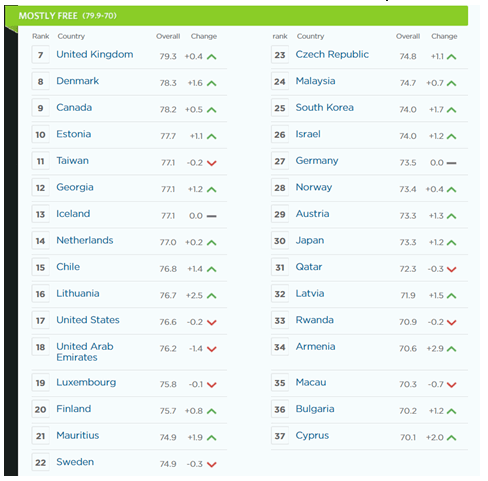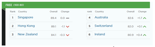 - Now the countries that rank the highest in economic freedom as of 2020 are: