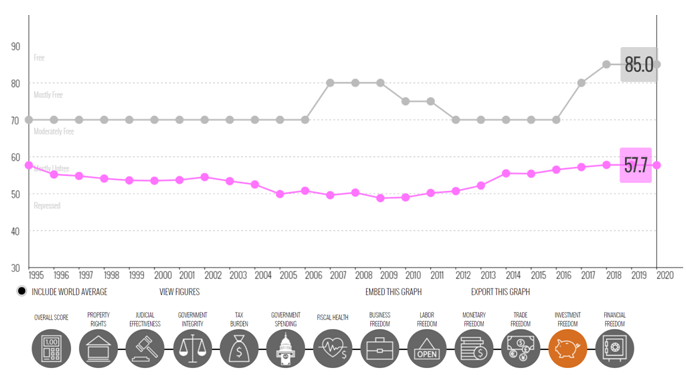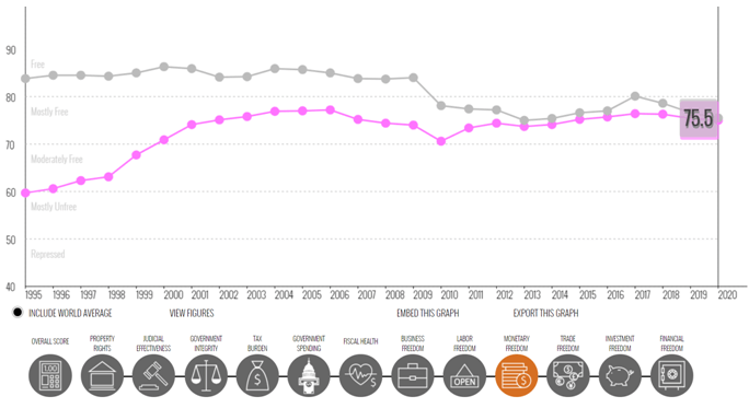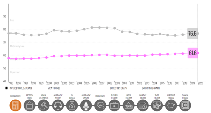 Now the obvious question arises in a layman’s: Who decides the ranking of economies per the freedom enjoyed? “The Index of Economic Freedom,” created by “The Heritage Foundation” way back in 1995 ranks the degree of economic freedom of various countries around the globe. We have chosen the united states of America to present the freedom: