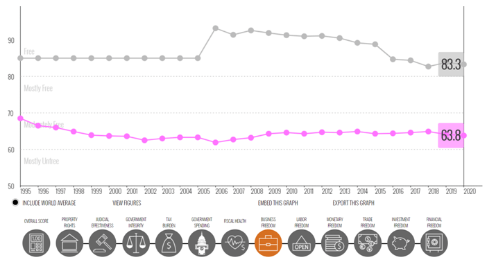 - Such an economy leads to growth in all segments, such as judicial effectiveness, tax burden, freedom of business, monetary freedom, financial freedom, the integrity of government, government spending, fiscal health, labor freedom, etc.