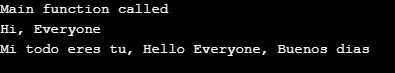 When the main() is called, there is output which is shown significantly in the output panel as shown below. First, the print statement of the main() is called and printed. Then, by distinguishing the number of arguments, the program separates the two overloaded functions which are present in the piece of code. The main() calls the first overloaded function, while the first overloaded function calls the second overloaded function.