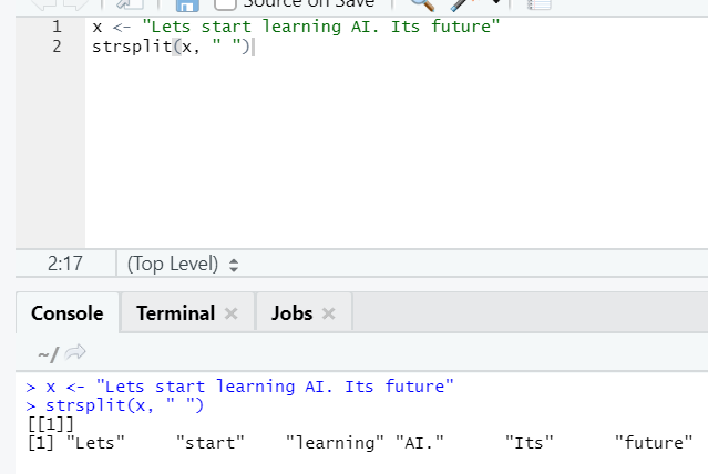 This function is to split the string. Let’s see the simple cases: