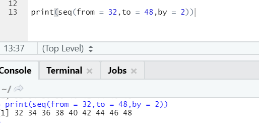 Here one can notice the sequence generated is having an incrementation of 2 because by is defined as 2.