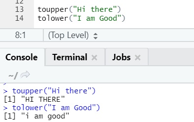 The two functions: toupper and tolower, are functions applied on the string to change the cases of the letters in sentences.