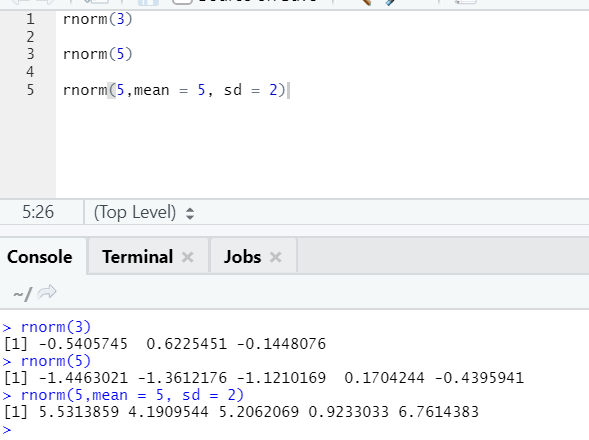 The function rnorm takes the first argument, which says how many numbers need to be generated.