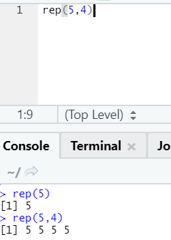 Here x represents the value to replicate, and n represents the number of times it has to be replicated.