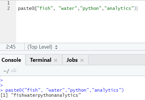One more similar function exists like this, which everyone should be aware of is paste0.