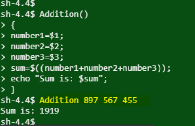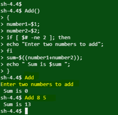 In the same way, we can even create a script file. Let’s write an addition Function inside a shell script and see how it works.