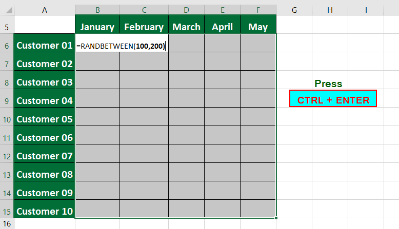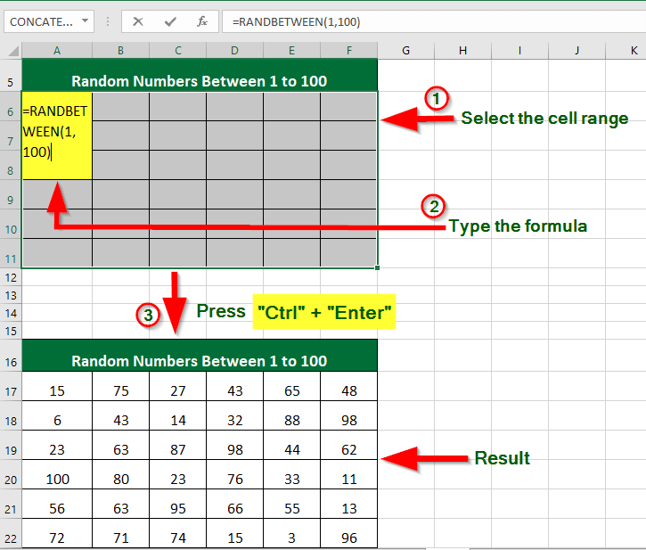 Step 3: Press “Ctrl” + “Enter” to generate the random numbers.