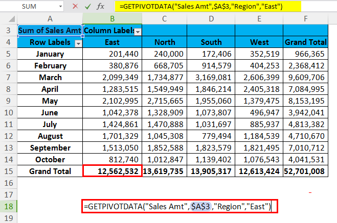 GETPIVOTDATA Function in Excel is very simple and easy to use. Let us understand the working of the GETPIVOTDATA Function in Excel with Some Examples.