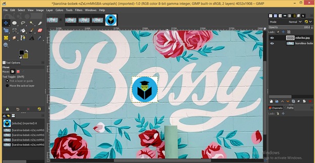 Now let us have a logo on this image on a new transparent layer. I have this EDUCBA official logo for this purpose, and I want to place it at the corner of this image, but how can I resize it? Let us find out.