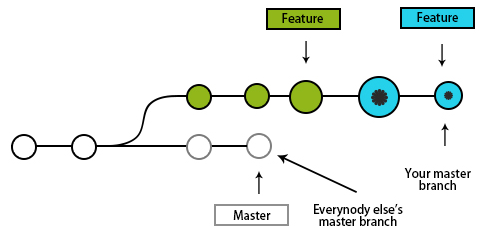 Just look at the above scenario. This can happen when u try to rebase master on top of your feature branch, and our master branch is public; now the master branch is updated, but everybody else is working on an older version of master. Since rebasing will result in brand new commits, git can think that the history of the master branch has diverged from everybody else. The only way to solve this will be to synchronize both the master by merging them back together and have a resultant set of commits that will be confusing.