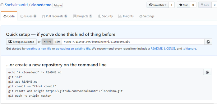 Step 5: Now it’s time to clone URL through our local system like shown below: