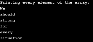 In the below example, we are running a loop on the array, the array contains a message, and we are running a loop on the message array and printing each element of the array.