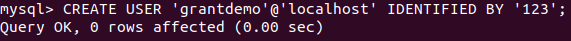 CREATE USER 'grantdemo'@'localhost' IDENTIFIED BY '123';