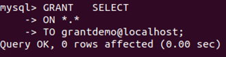 We can grant certain privileges to the user that has the privilege level that is scope globally on all the tables of all the databases. This is called granting privileges at the global level. Suppose we want to grant SELECT privilege on all the tables of all the databases to the grantdemo user. This can be done by using the following query –