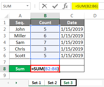 The above screenshots of Set-2 and Set-3 have the sum we have applied in the Set-1 sheet.