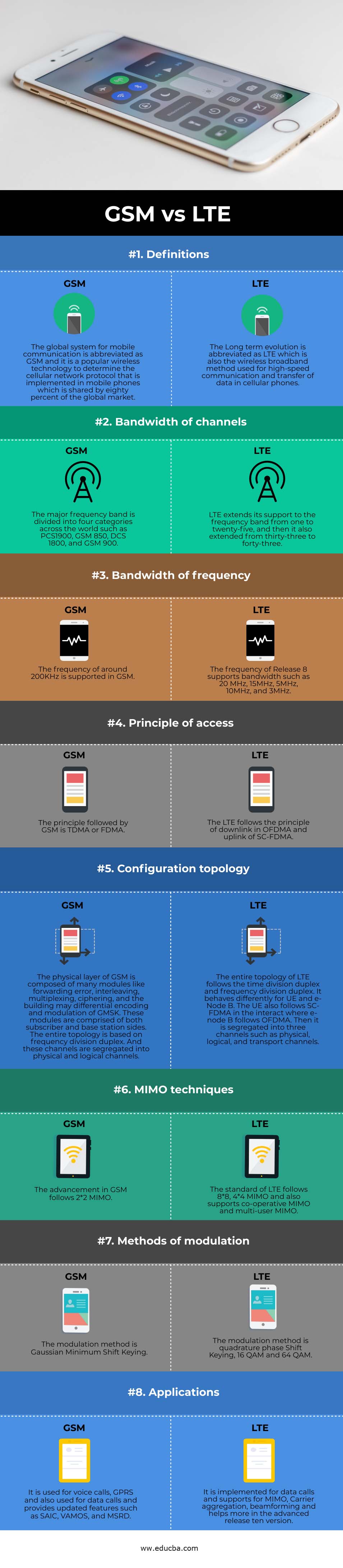 This is a guide to GSM vs LTE. Here we discuss the GSM and LTE key differences, head to head comparison with infographics and comparison table. You may also have a look at the following articles to learn more –