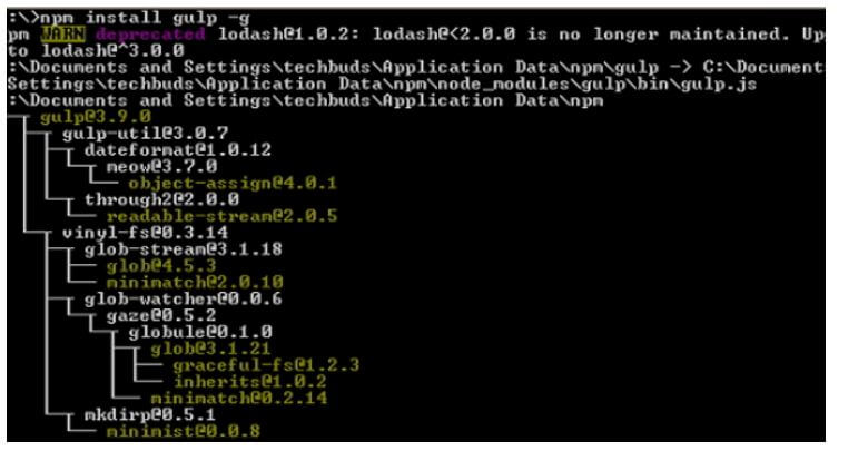 - In the above command, we use g for a flag that ensures gulp is globally available for all projects.