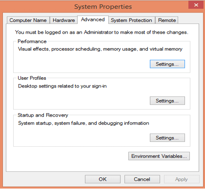 - Here we need to click on the Advanced tab and inside the click on the Environment variable as shown the below screenshot.