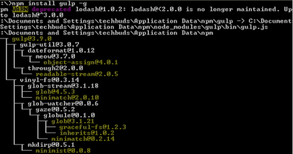 Now we successfully installed the Node.js, now we need to install the gulp by using the following command as follows.