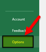 - Click on Options in the list present on the left-hand side to open the Excel Options dialog box.