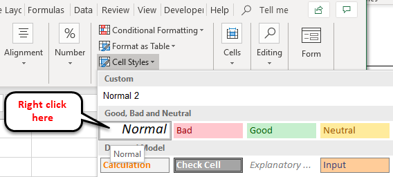 - In the dropdown, under Good, bad & Neutral, Right-click or select the box in the palette entitled Normal, also called a Normal style.