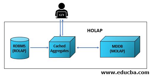 In a HOLAP system, the user can access the data from the relational database system and the multidimensional database system using simple queries for relational database and complex aggregate queries for a multidimensional database. As the querying process is complex and the same queries can be reused on a multidimensional system, it is efficient to build a cached data server just for the aggregates and repeatedly fetched data from the relational database. A Sample Model HOLAP Architecture can be pictured as