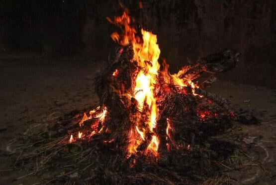 Hiranyakashipu, a brutal king, considered himself God and demanded worship from all. His son, Prahlada, a devotee of Lord Vishnu, refused to comply. Hiranyakashipu tried to kill Prahlada but failed. He then sought the help of his sister, Holika, who had a power to resist fire. She deceived Prahlada into sitting on her lap on a pyre, but her power failed, and she burned to ashes while Prahlada was saved. This event is celebrated as Holika Dahan, symbolizing the victory of good over evil. People gather around the pyre after sunset to perform puja and light it up.