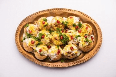 Papri chaat is a popular Indian food with chickpeas, potatoes, yogurt, and tamarind chutney. It has sweet, sour, tangy, and spicy flavors. Hold you off until dinner.
