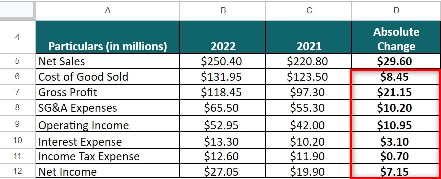 Refer to the prior sections to learn more about the horizontal analysis formula.