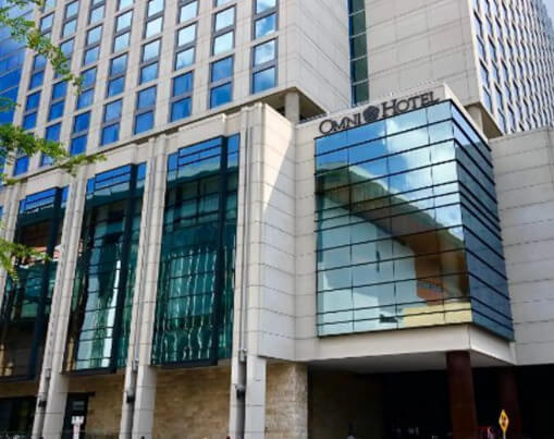 The Omni Nashville Hotel is a luxury hotel located in downtown Nashville, Tennessee. It is a popular choice for both business and leisure travelers due to its central location and range of amenities. The hotel features 800 guest rooms and suites, which are elegantly decorated and furnished with modern amenities such as flat-screen TVs, mini fridges, and Wi-Fi. The hotel also offers a range of amenities and services to its guests, including a fitness center, a spa, a rooftop pool, and several on-site dining options.