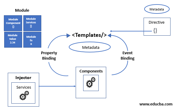 This diagram form official Angular documentation of Angular illustrates, how these building blocks interact with one other to create an angular module, and at end modules are integrated to build an angular Application.