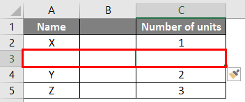 Now it has three rows of data. But we can do that if we need to add a cell at cell B4 by moving the data to the right. Follow the steps.