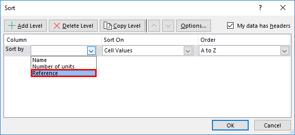 Step 7: From Sort by select the “Reference” option as shown in the below image.
