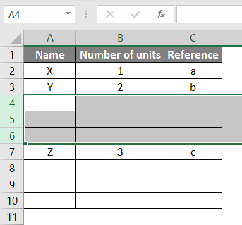 When we select “insert cells,” it will directly add the rows without asking for another pop-up as it asked before. Here we highlighted 3 lines; hence when we click on “Insert Cells”, it will add another 3 empty lines under the selected lines.
