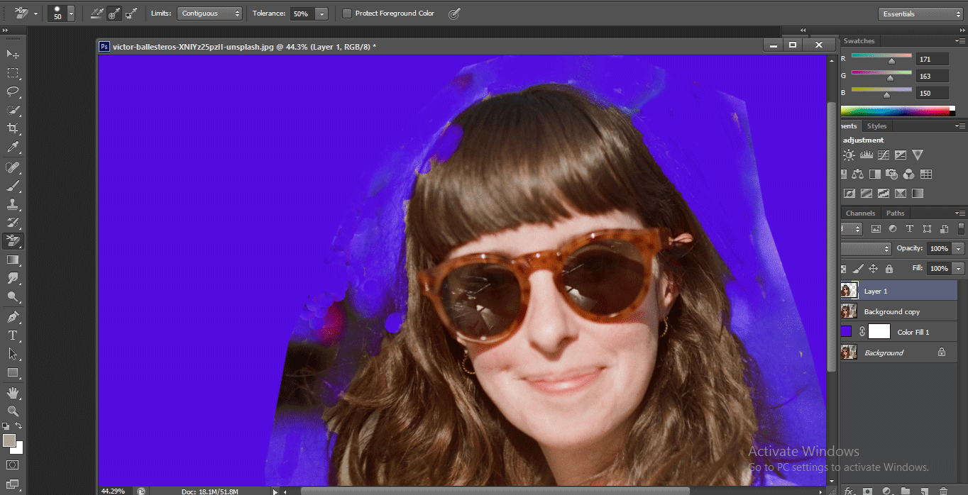 - Now select the Contiguous option in the Limits option of the Background Eraser tool.