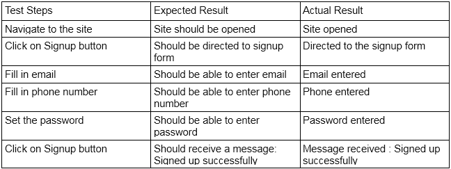 - The expected and actual results for every step should be clearly mentioned. These are very helpful for the tester as using this, a tester can clearly identify the step at which the application fails during the time of failure.
