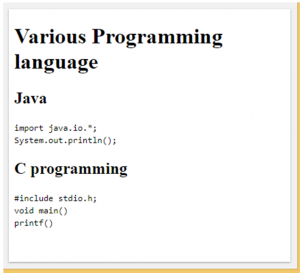To make a code properly and to look and read fashion, we have to use <style> element in CSS. We can style the block of code within the <pre> element as we like.