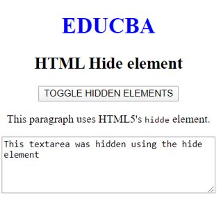This is a guide to HTML Hide Element. Here we discuss the introduction, usage of hidden attributes, and examples of HTML hide element. You may also have a look at the following articles to learn more –