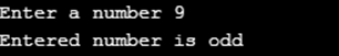 Here we have written a program to check the even and odd number using is else statement. variable n is declared and allows the user to enter the value. variable n stores the value entered by the user. If statement checks the condition n%2 == 0 that declared to check the even number. if the number entered by the user satisfies the condition, it will print the Entered number is even. Else it executes the else statement and prints Entered number is odd.