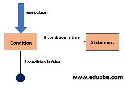 In the below flow diagram we can see when execution starts, it first checks the condition. If the condition is true then it will go to the statement block. Here conditions can be one or multiple. Any condition other than zero, false, blank are considered as true only .for example if any conditional expression gives an output of 0,”, false all these are considered as false statements.