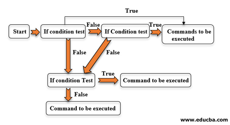 In an If-Elif-Else block in shell scripting, the condition for the “If” statement is checked in Line 1 and if it satisfies the condition moves to commands to be executed in Line 2. If the condition is not true in the previous Line 1 condition, another condition is checked for in Line 3 and if the condition is satisfied in Line 3 it moves to commands to be executed in Line 4. If this condition is also not fulfilled, another “elif” condition is checked in Line 5 and if it is true here, it will move to Line 6 commands. Else if none of the above “If” condition is satisfied commands in Line 7 are executed. The “Else” part which leads to commands in Line 7 is an optional command and the user can choose to not do anything if none conditions are satisfied.