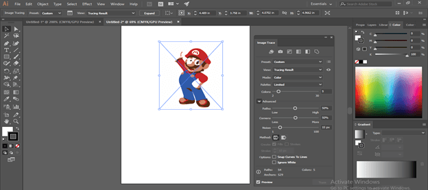 Set its size as per your choice. We have two options for going to the Image trace feature. The first one when you select any image, you will have some parameters and properties active at the parameters’ bar of this software. You will have the Image Trace tab in this bar, which is next to Edit Original tab.